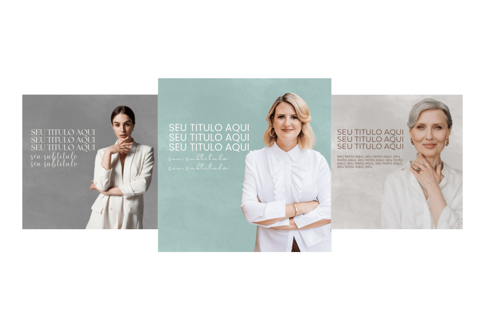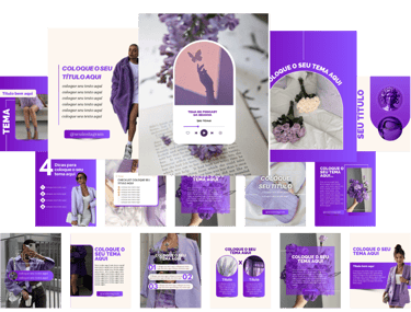 Você vai escolher a sua identidade visual e os seus modelos de posts favoritos. OBS.: vai poder usar todos os packs e modelos que quiser.