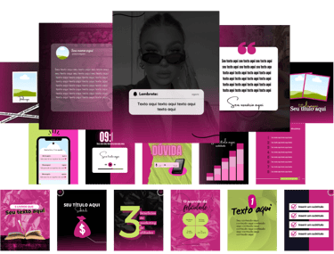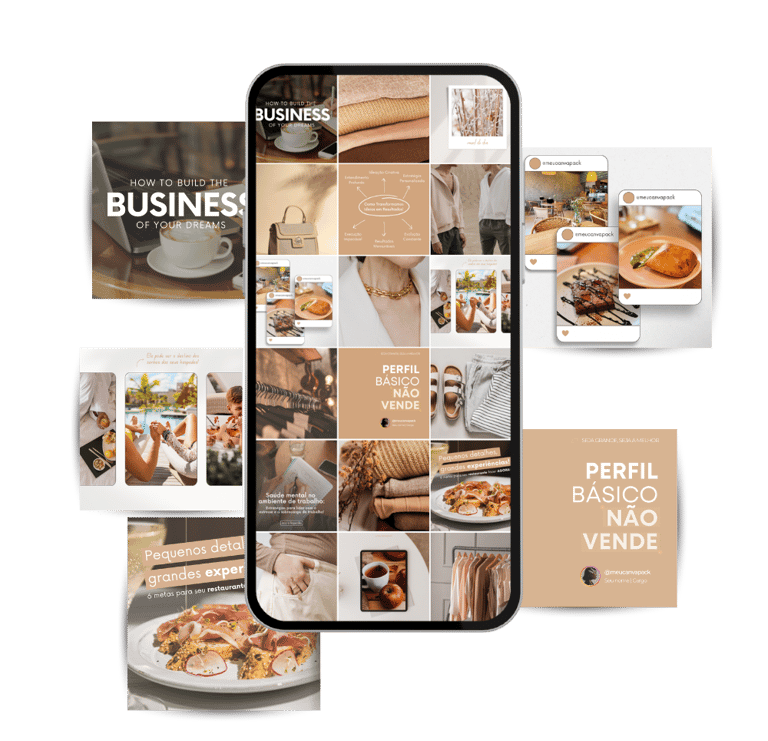 São mais de 60 modelos, projetados para elevar seu perfil a um nível superior, funcionando perfeitamente no Canva gratuito e cada um seguindo um padrão visual exclusivo.
