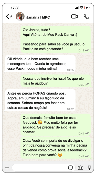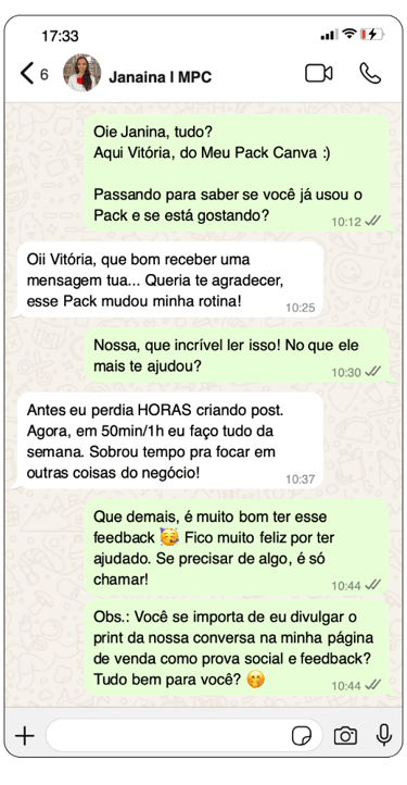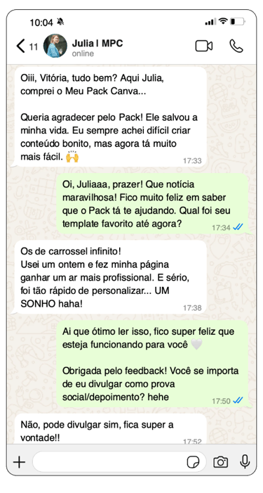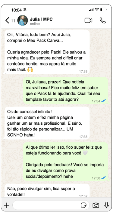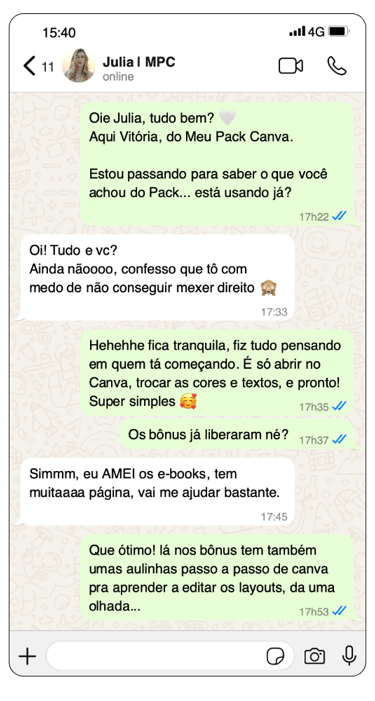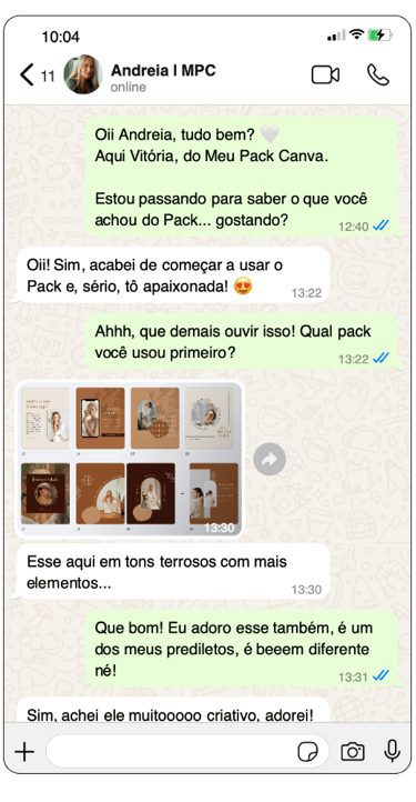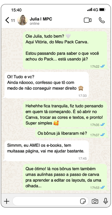 Se ficou com qualquer dúvida sobre o Meu Pack Canva, converse com meu time no