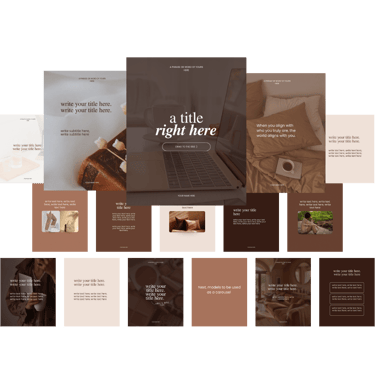 Confira abaixo algumas das coleções que você encontrará dentro do Meu Pack Canva (são mais de 30).
