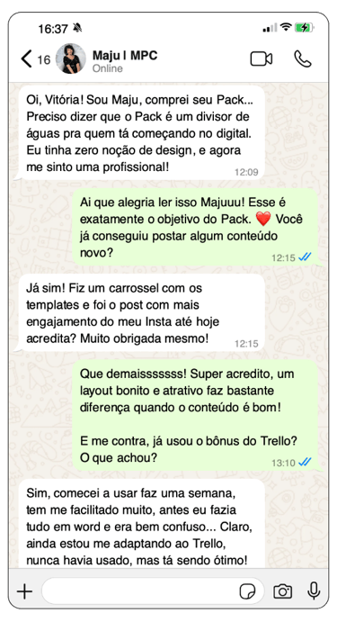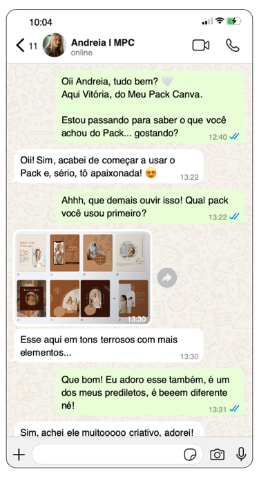 Se ficou com qualquer dúvida sobre o Meu Pack Canva, converse com meu time no